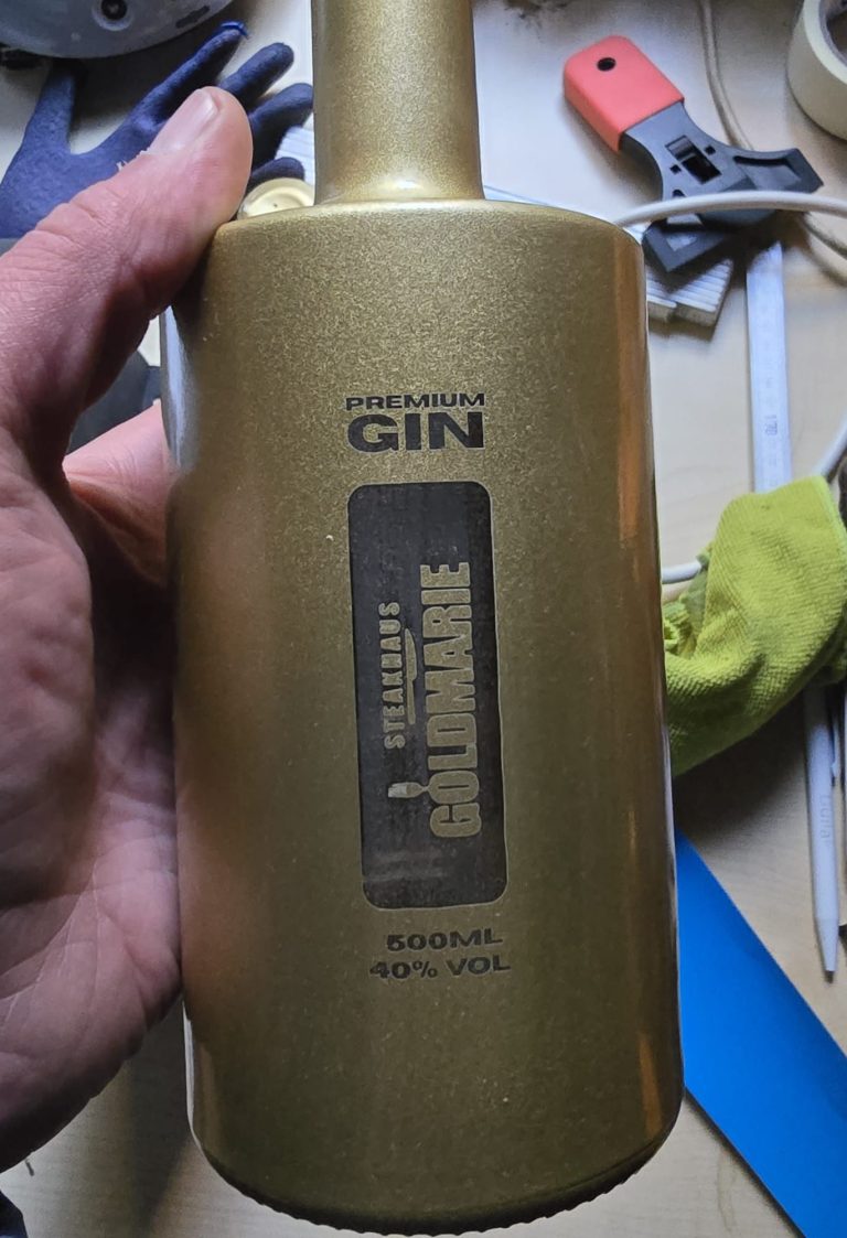 Ihr Logo auf einer edlen, matt – goldenen Gin Flasche – das ist kein gewöhnliches Präsent, das ist ein echtes Statement. Ob für Top – Kunden, langjährige Partner oder Firmenjubiläum: